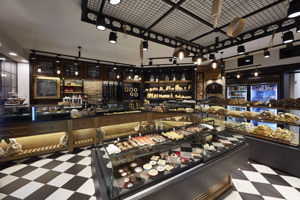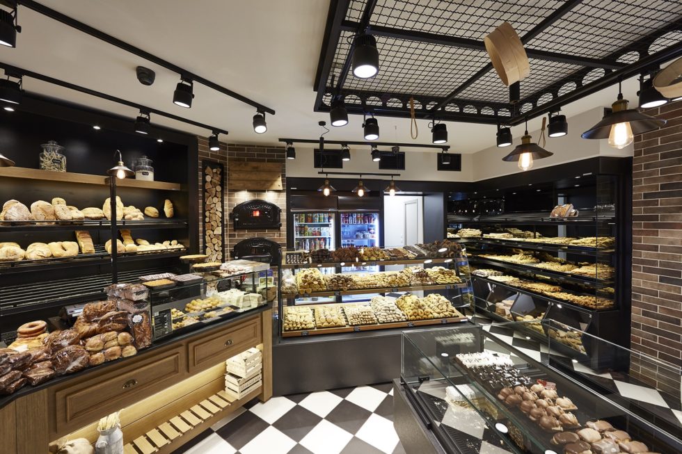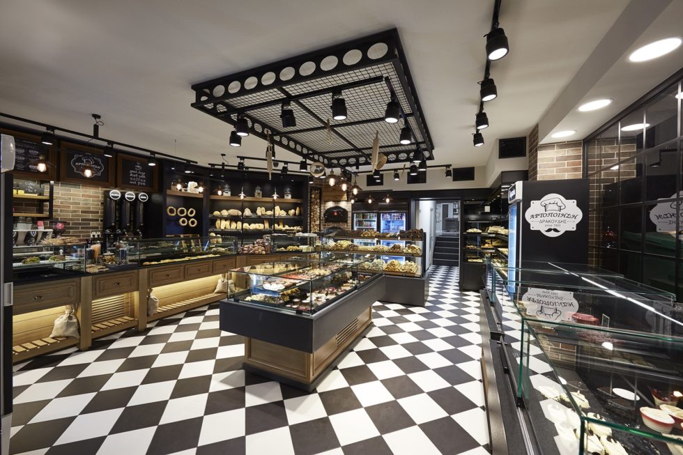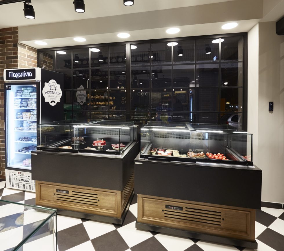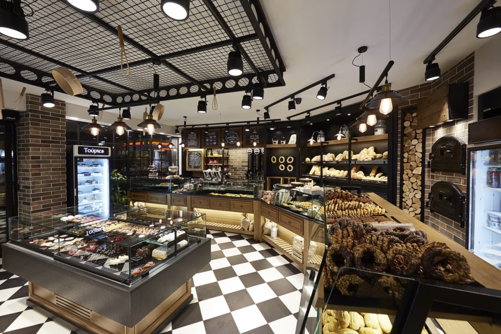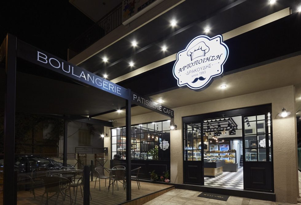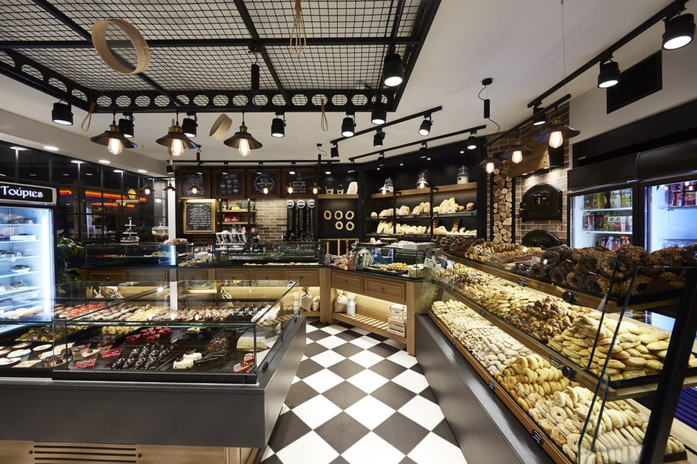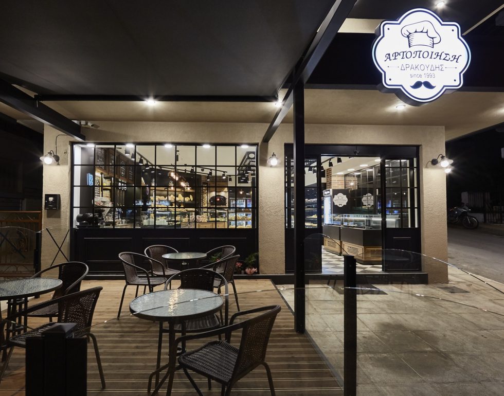 New bakery-confectionery store DRAKOUDIS BAKERY opened in Ag. Dimitriou area under the supervision of D. Antonopoulos SA. The study of the space and the attentive design of the equipment are to account for this aesthetically appealing outcome. There you will enjoy a wide variety of pastries, impressively projected through the vitrines lit with interior LED lighting and decorated with wooden panelling and antique black granite. The wall surfaces are brick-panelled, nicely combined with the retro type decorative tile on the floor.