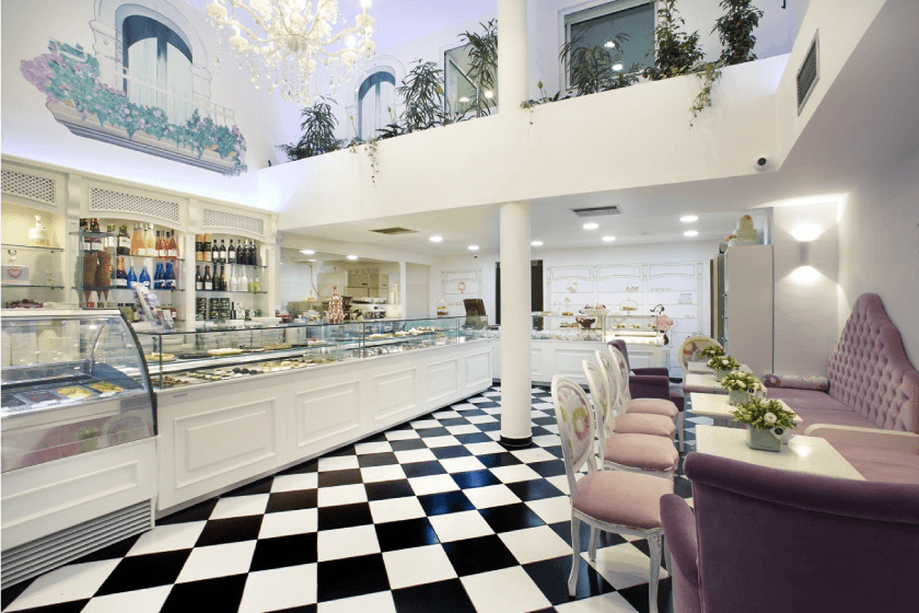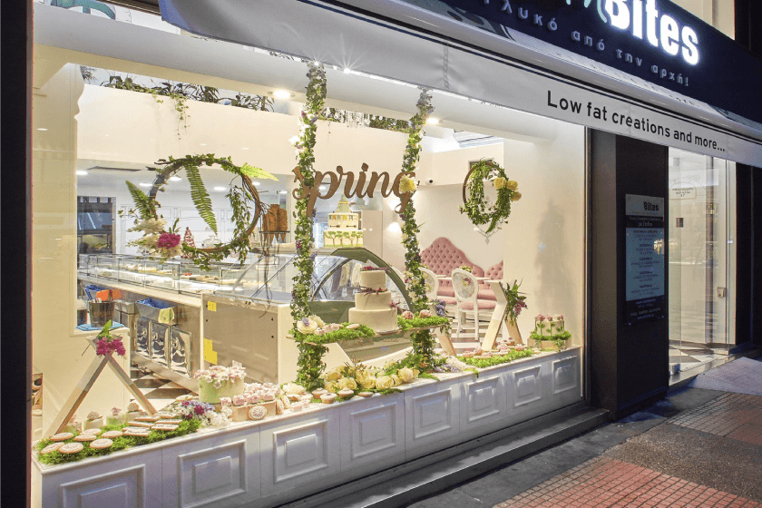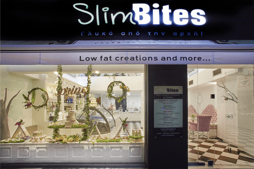 A brand new SLIM BITES store opened in Kolonaki area in due diligence by D. Antonopoulos SA. The architectural study of the space is impressive allowing customers to indulge in the luxury it bears. In the specially designed space, the customer has the opportunity to choose from a wide variety of stevia sweets, satisfying their appetite in a high-aesthetics space. Sweets are displayed through illuminated crystal glass cases of GLAMOUR refrigerators, in tones of white. Customers get impressed by the inner decoration while enjoying their coffee in the singular living room, framed by murals, chandelier lighting and balconies ornamented with indoor plants.